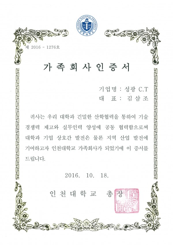 성광 C.T와 인천대학교가 산학협력을 체결하였습니다.